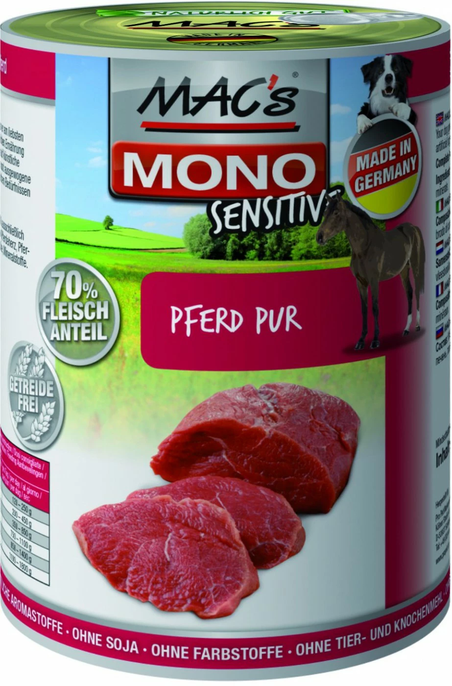 MACs Dog Mono Sensitive Pferd Pur – Hypoallergenes Nassfutter ausschließlich aus Pferdefleisch und zugesetzten Mineralstoffen