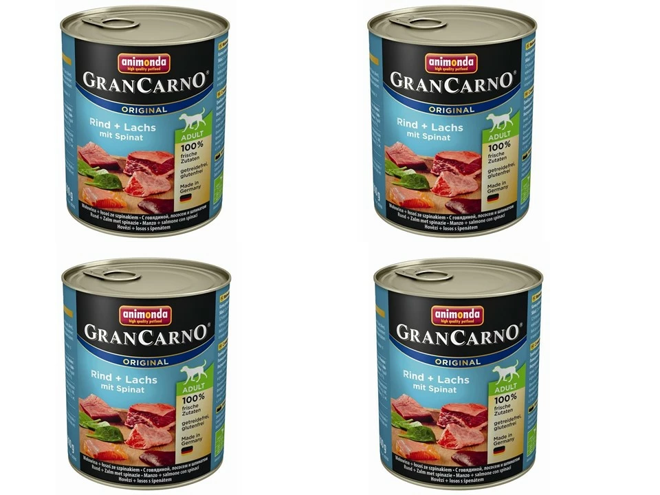 Sind Sie auf der Suche nach Animonda GranCarno Adult mit Rind, Lachs und Spinat im 6x 800 g Pack werden Sie bei zooheld.de fündig. Bei uns bekommen Sie alles, was Sie für die Haltung und Pflege Ihres Haustieres benötigen. Ob Hund, Katze, Fische, Nager, Vögel oder Pferde, bei uns können Sie Ihren kompletten Tierbedarf kaufen. Wir führen neben Nass- und Trockenfutter auch Spezialfutter für Problemfälle. Sie werden bei uns auch immer günstige Angebote finden und praktische Vorratspackungen. Ab einem Bestellwert von 29 Euro liefern wir Ihnen die Ware versandkostenfrei an Ihre Wunschadresse. Natürlich können Sie die Artikel innerhalb von 30 Tagen zurückgeben, falls Sie Ihnen nicht gefallen. Sehen Sie sich einfach in unserem großen Sortiment um und finden Sie alles was Sie benötigen. Bei Fragen und Anregungen steht Ihnen unser Support zur Verfügung, der Ihnen gerne weiterhilft.