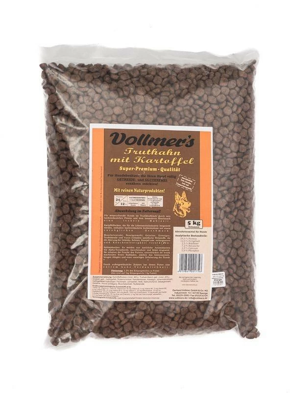 Vollmer’s Truthahn mit Kartoffel kann feucht (mit etwas Wasser übergossen) oder trocken gefüttert werden.